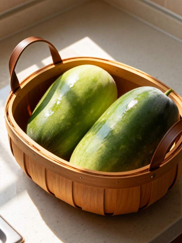 新鲜冬瓜置于竹篮