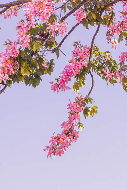粉色异木棉花垂枝春意浓