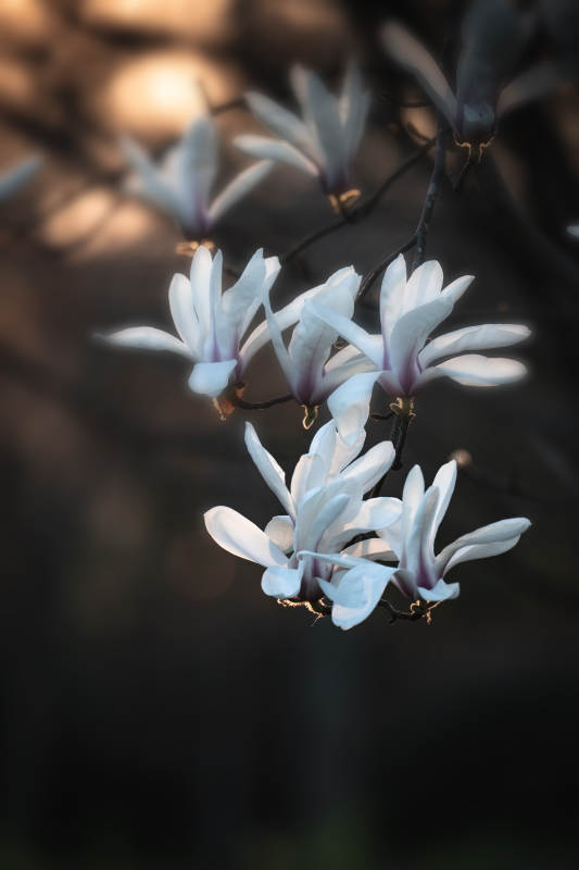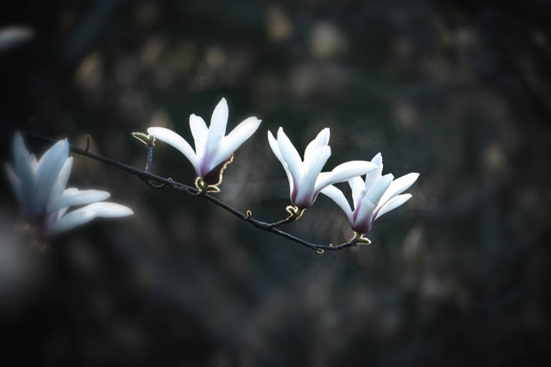 玉兰绽放夜色中