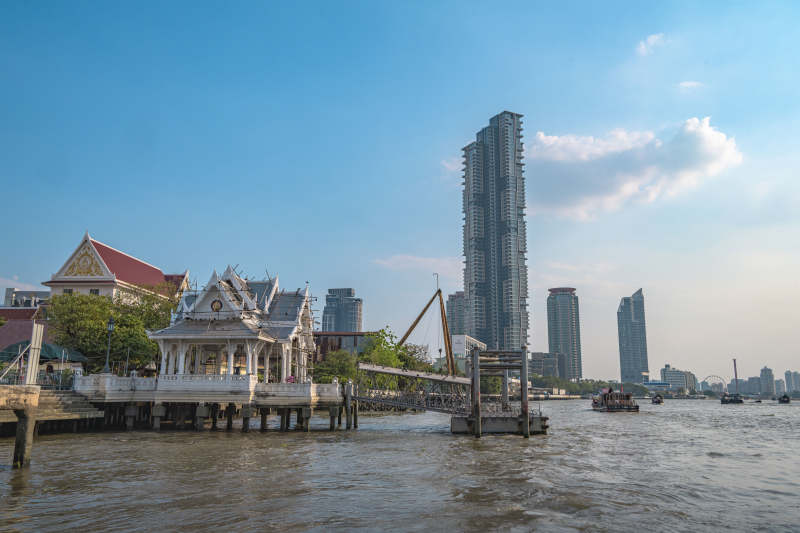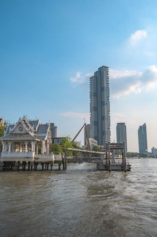 河畔古亭与现代高楼