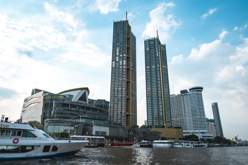 城市天际线与游船