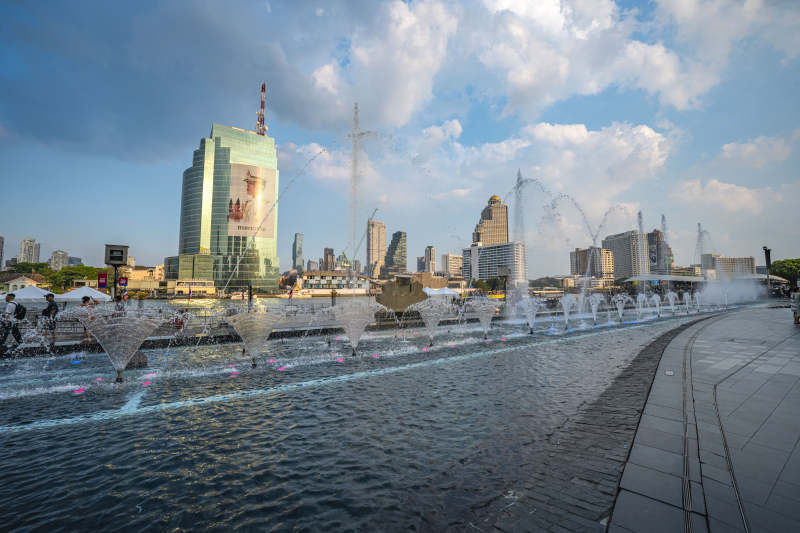 城市喷泉与高楼