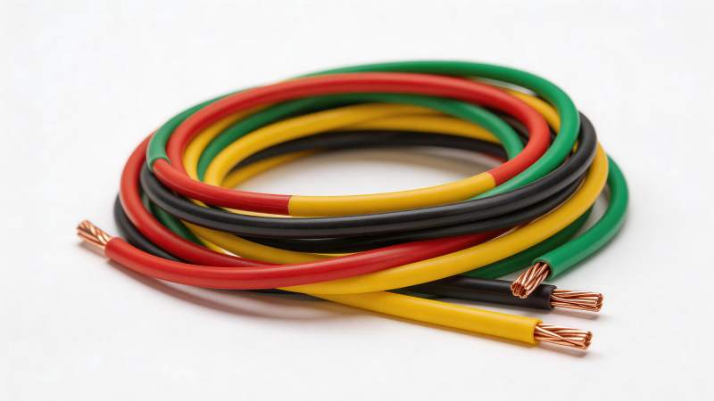 红黄绿黑四色绝缘铜芯电线盘绕特写