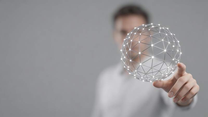 商务人士触碰发光网络连接球体