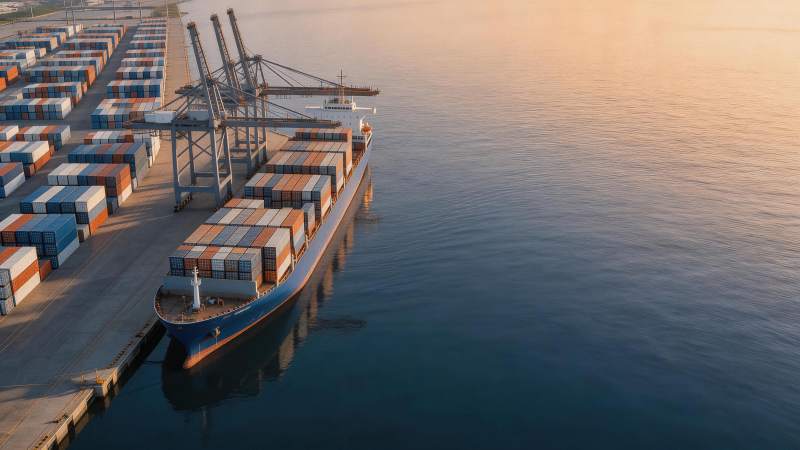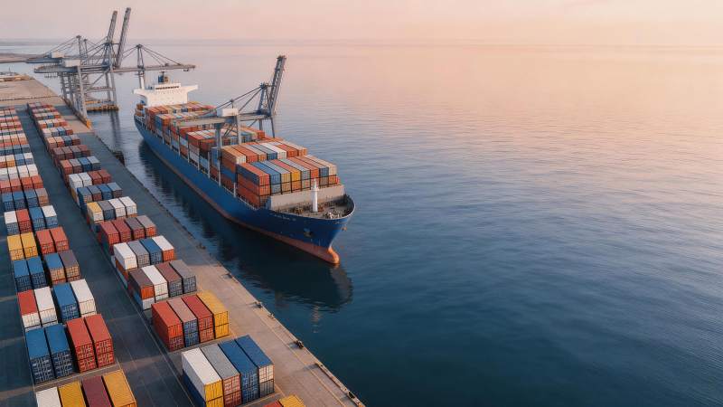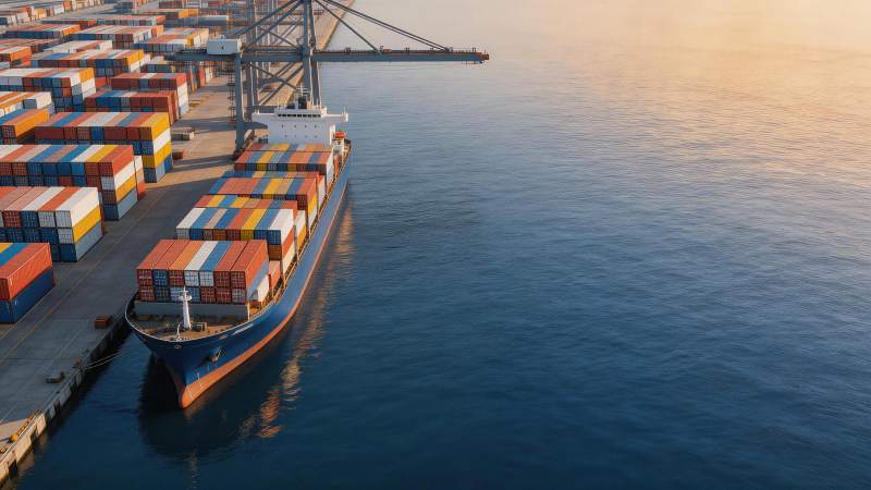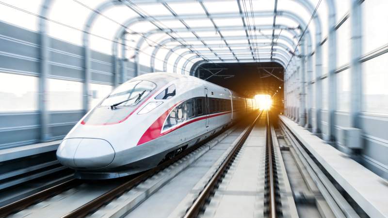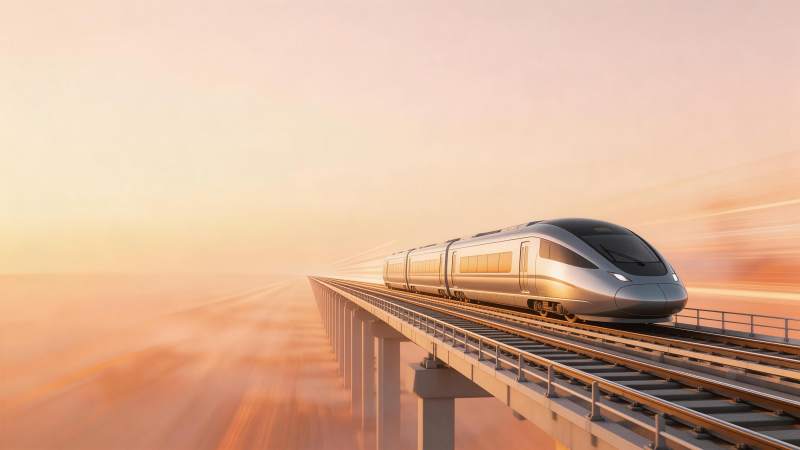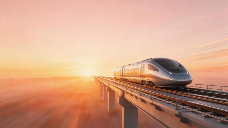 高速列车在高架桥上疾驰穿行于晨曦之中