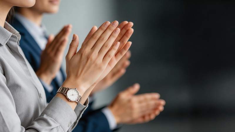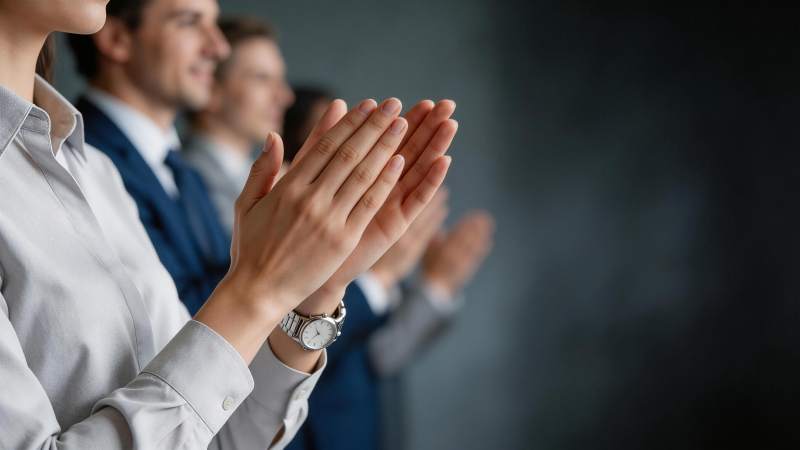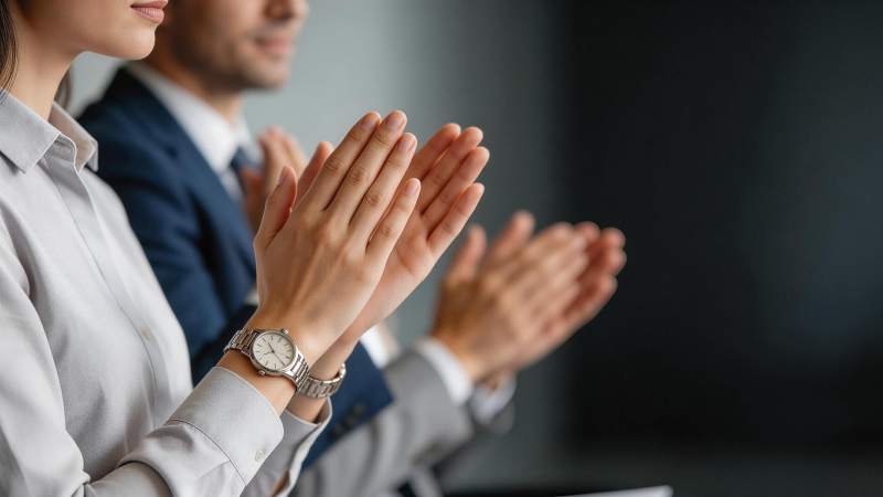 职场人士鼓掌致意的特写场景