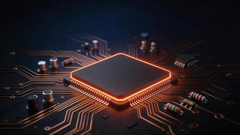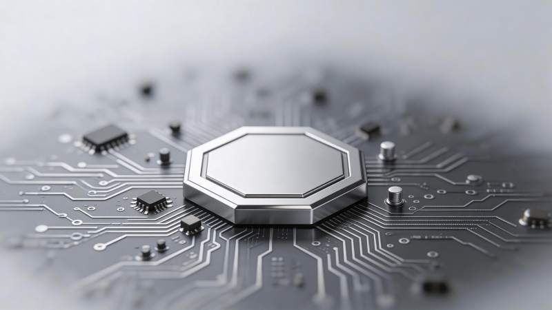八角形芯片置于电路板中央特写