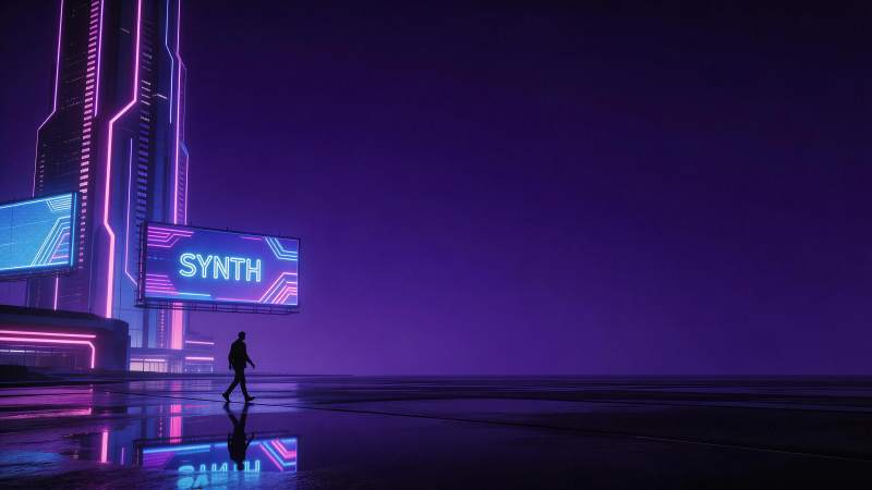 霓虹灯光下的未来城市夜景行人剪影