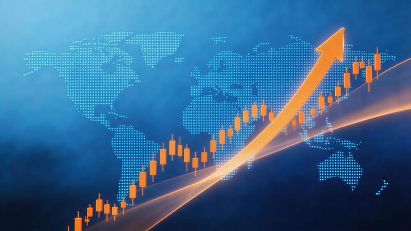 全球金融图表上升趋势与世界地图背景