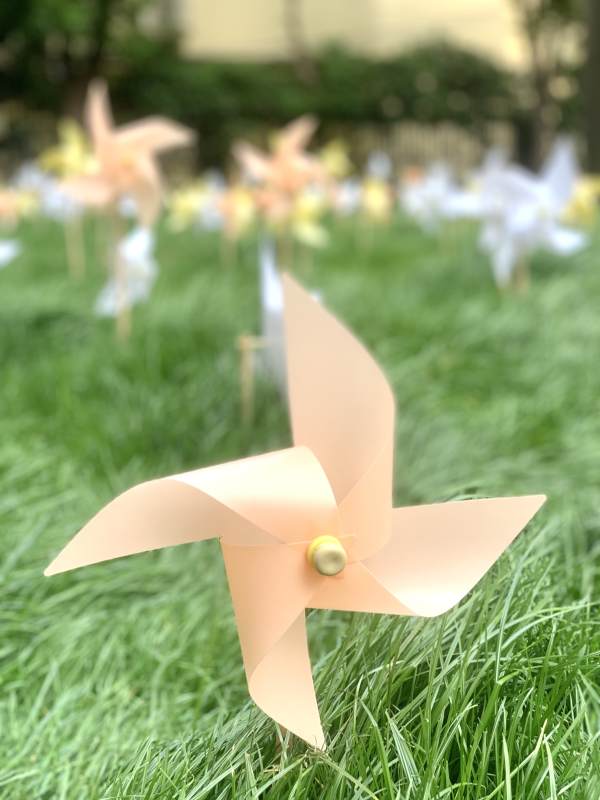 草地上的粉色纸风车